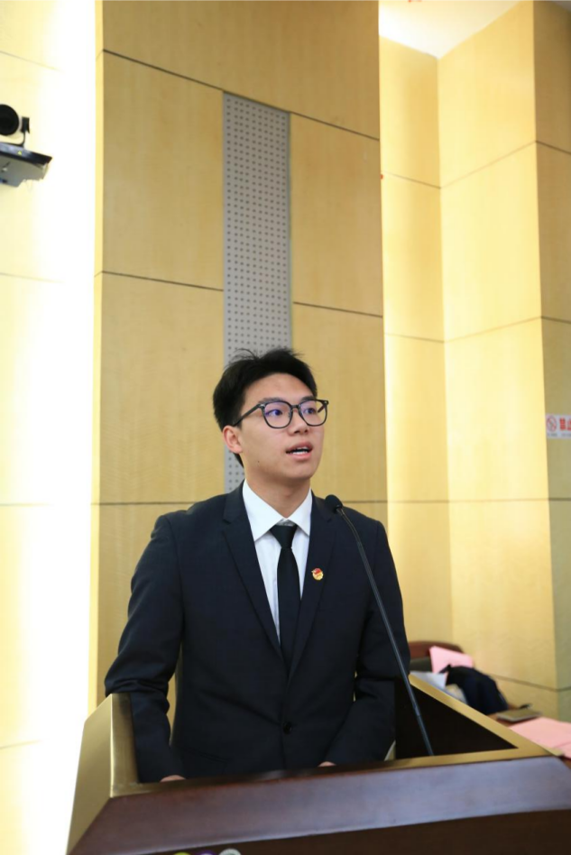 校学生会主席团成员席皓发表致辞。他向我院学生会全体成员提出三点建议:第一,思想要先进,主动学习党的先进思想;第二,心态要昂扬积极,主动接过前辈的接力棒,传承好学生会的工作精神;第三,行动上要雷厉风行,把目标落到实处,提高能力和工作效率。