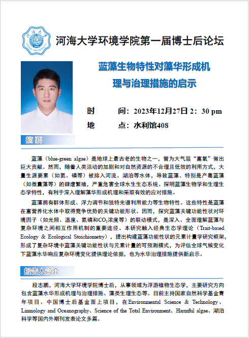 环境学院第一届博士后论坛:蓝藻生物特性对藻华形成机理与治理措施的启示