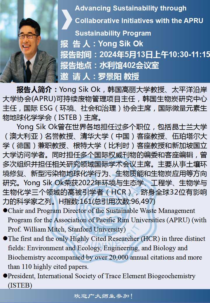 环境学院学术报告:Advancing Sustainability through Collaborative Initiatives with the APRU Sustainability Program
