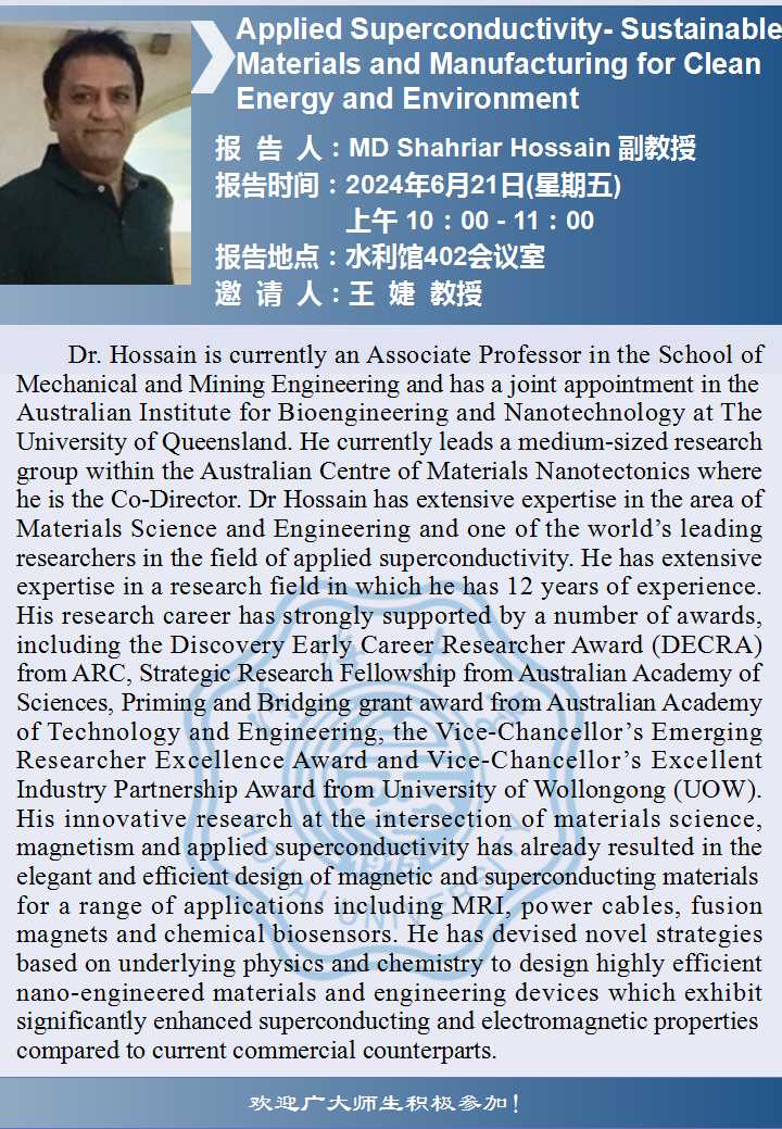 环境学院学术报告:Applied Superconductivity- Sustainable Materials and Manufacturing for Clean Energy and Environment