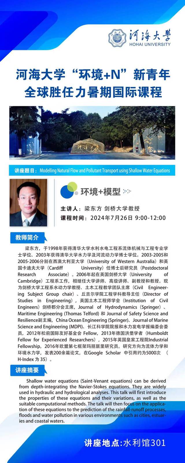 河海大学“环境+N”新青年全球胜任力暑期国际课程:“环境+模型”--数值模型在污染物运移中的应用