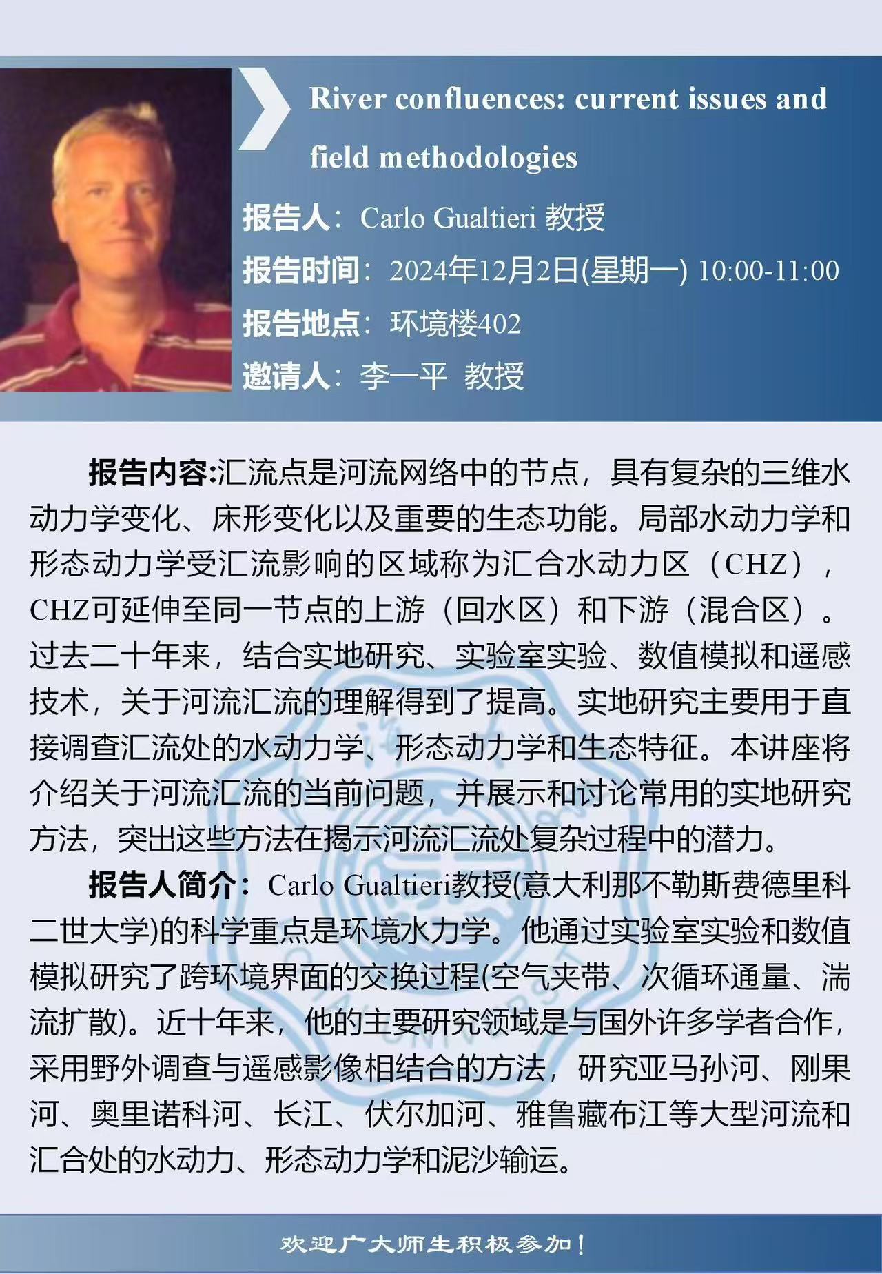 环境学院学术报告:River confluences: current issues and field methodologies