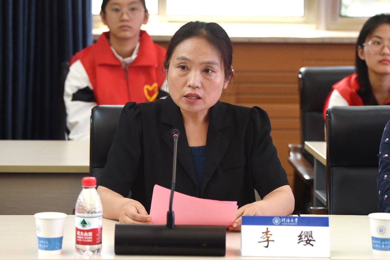 会上,与会领导向参加本次活动的志愿者代表授旗,环境学院学生齐珂颖作为志愿者代表宣读志愿者倡议书。